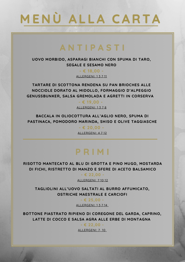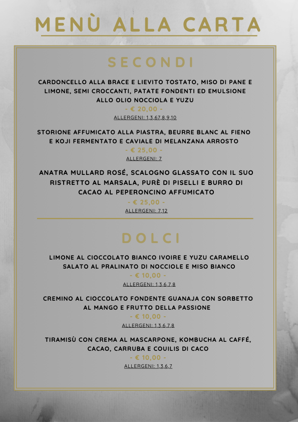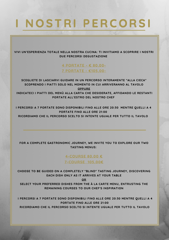 IL PERCORSO A 4 PORTATE É DISPONIBILE FINO ALLE ORE 21:00 - QUELLO A 7 PORTATE FINO ALLE ORE 20:30